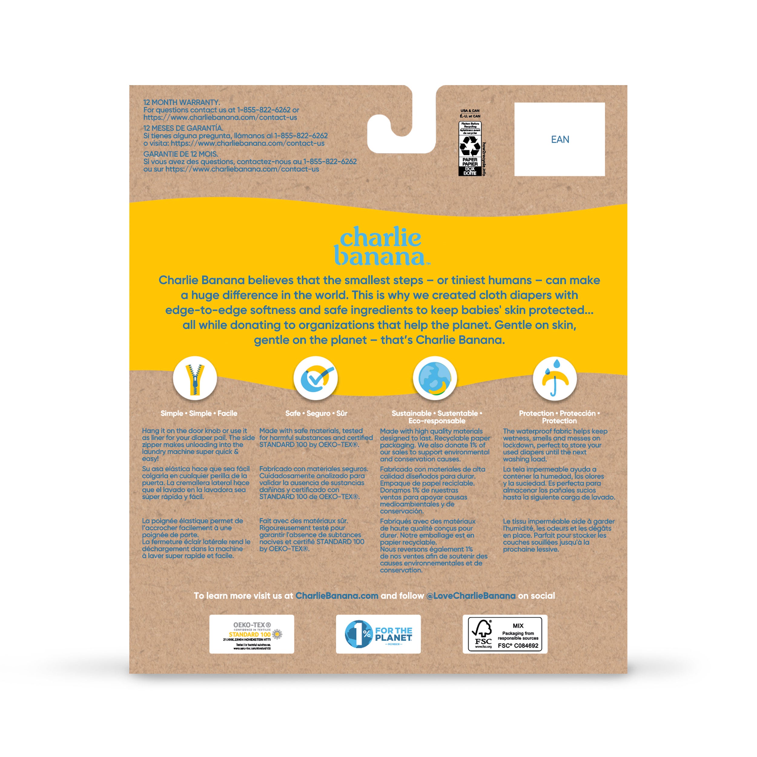 At Charlie Banana, we’re all about caring for your baby and our planet at the same time. Our diaper pail's waterproof fabric helps keep wetness, smells and messes on lockdown, perfect to store your used diapers until the next washing load. We use only safe materials, rigorously tested for harmful substances, and certified under STANDARD 100 by OEKO-TEX®.