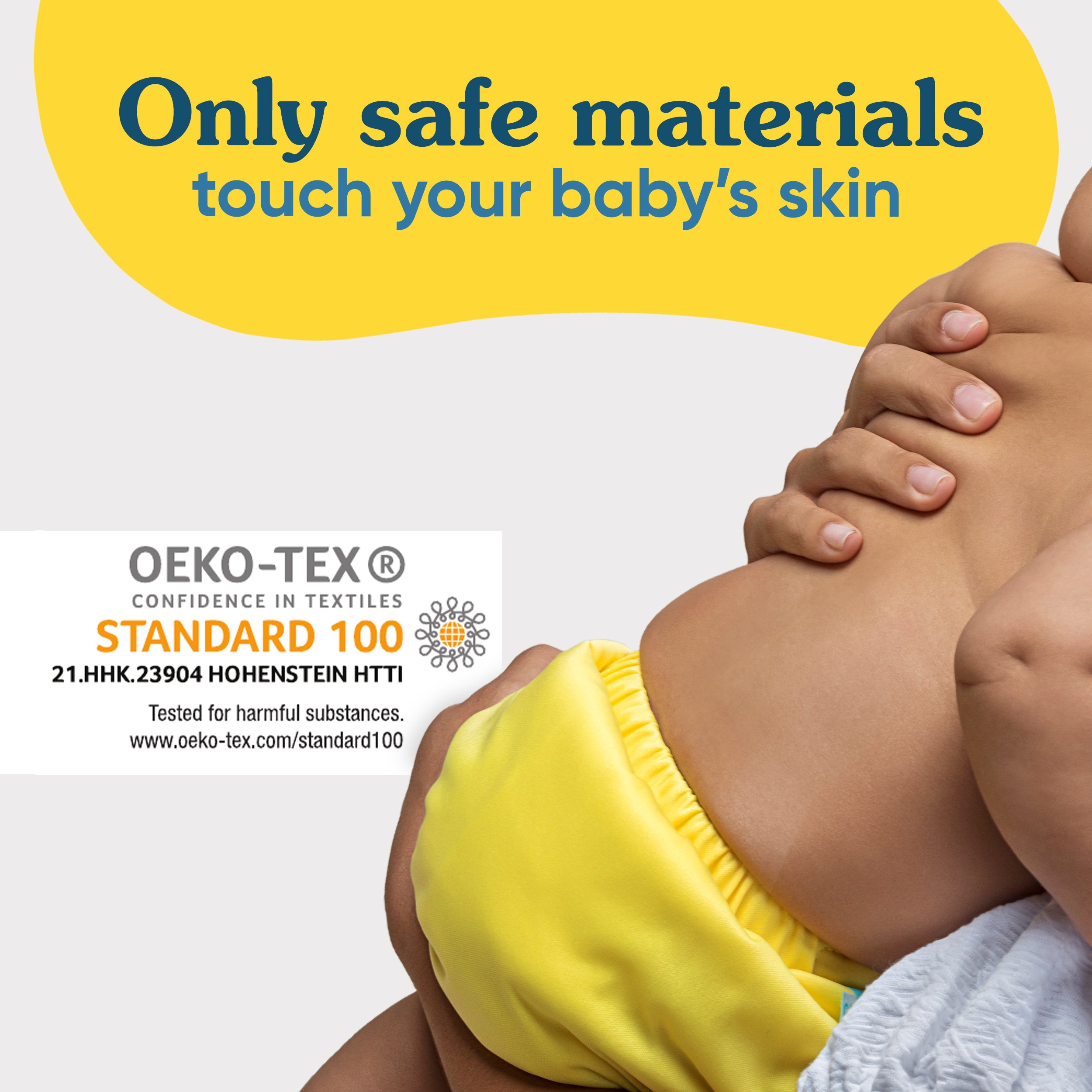 At Charlie Banana, we’re all about caring for your baby and our planet at the same time. Our extra-absorbent reusable deluxe inserts are designed with multiple layers of absorbent microfiber, one layer of super-soft fleece, and our signature edge-to-edge softness to help protect your baby's delicate skin. We use only safe materials, rigorously tested for harmful substances, and certified under STANDARD 100 by OEKO-TEX®. In the box, you'll find three reusable deluxe booster inserts to put in any Charlie Banana diaper. The perfect proportion for our XS size setting, use one or two inserts. And as your baby grows (and for bigger sizes), pair it with a one size insert for enhanced absorbency!