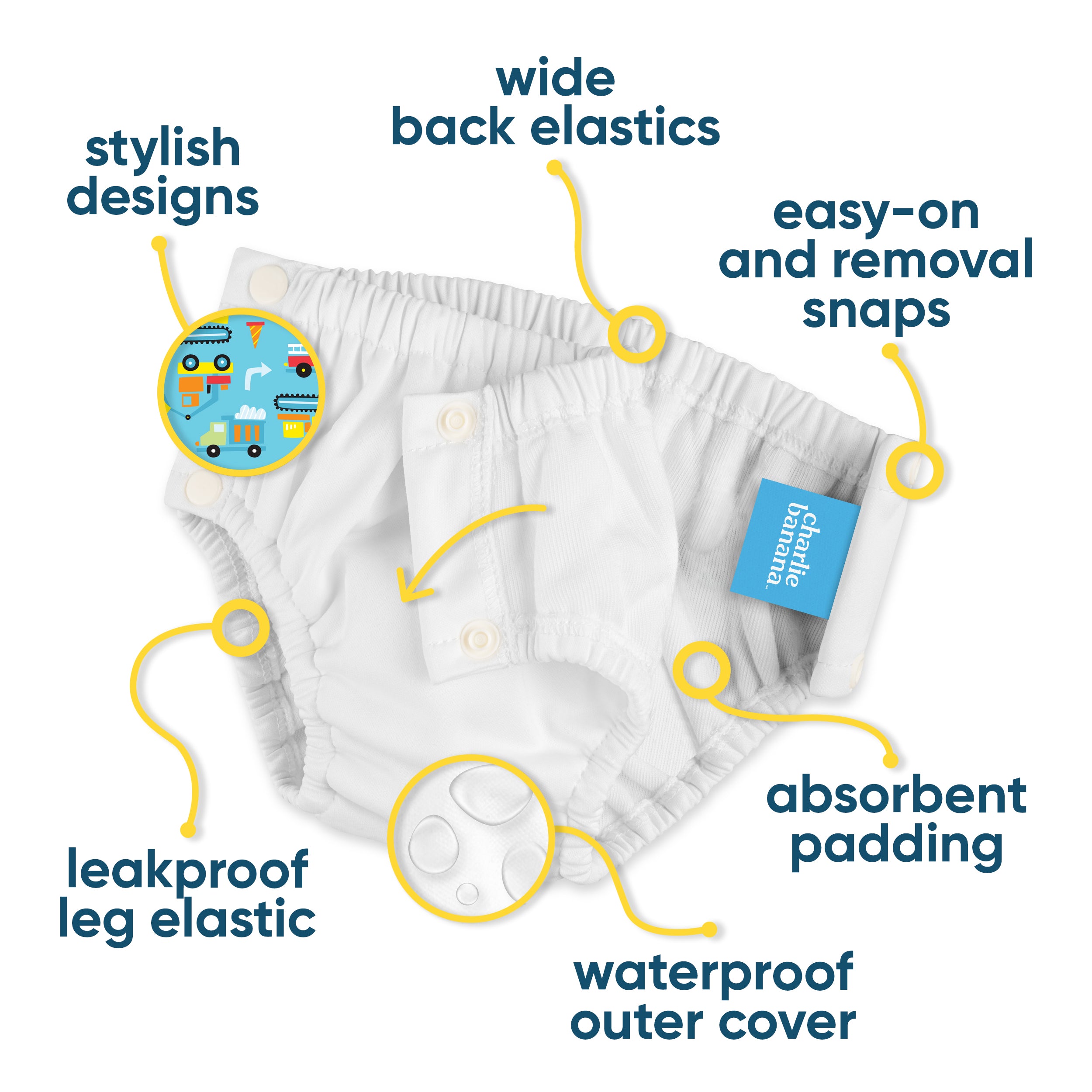At Charlie Banana, we’re all about caring for your baby and our planet at the same time. That's why we only use safe materials, all rigorously tested for harmful substances and certified under STANDARD 100 by OEKO-TEX®. Our potty training pants are super soft, made with 100% organic cotton lining and absorbent padding. They are expertly designed with a waterproof outer layer to minimize accidents. Wide back and leg elastics deliver a snug and comfortable fit. Our training diapers are easy to pull up and down, thanks to snaps on both sides and come with fun and colorful designs. Our reusable training pants come in four sizes (small, medium, large and x-large), so you can select the perfect size for your baby. We know that single-use plastics can have a devastating impact on our environment—and reversing that impact means creating products that are gentle on your baby's skin and gentle on the planet. That's why we commit 1% of our sales to support environmental causes.